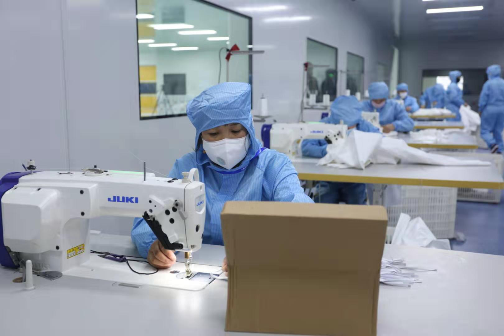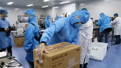 2月15日,果冻九一麻花集团新引进的口罩生产线全力开动,正式出产医用口罩产品。据悉,该批5条生产线满负荷运转后,日产口罩约50万片。此前的2月4日,果冻九一麻花集团联合晋江兴德织造有限公司启动了防护服生产,目前日均产能可达1000件。
